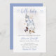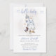 Este adorável convite apresenta capas, chapéu, calçados, pacificador e bicho de pelúcia, arranjados em fundo branco, com iluminação suave. Se precisar de outro produto ou personalização correspondente, entre em contato comigo.