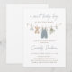 Celebre a chegada de um pequeno com este elegante convite para chá de fraldas de roupas de bebê azul.