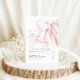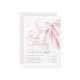 Convite de Chá de fraldas de Script de Arco Rosa. Este convite elegante apresenta um encantador arco cor-de-rosa pincelado e um roteiro manuscrito romântico, perfeito para um chá de menina caprichosa. A fita chic e a design de pré-disquete adicionam um toque de sofisticação, enquanto a modelo editável permite uma fácil personalização. Crie um convite bonito e memorável para o seu evento especial.