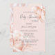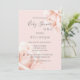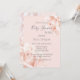 Chá de fraldas cor-de-rosa por convite por correio com rosas embaçados elegantes. Os scripts de cinza definem o tom para suavidade e um aspecto filtrado.