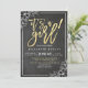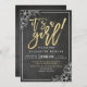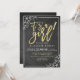 Modelos de Cartões de Convite para chás de fraldas - Script Dourado Elegante e Quadro Floral Branco no Fundo Grunge Black Chalkboard. Todo estilo de texto, cores, tamanhos podem ser modificados para ajustado das suas necessidades!