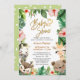Cartão de Convite para Chás de fraldas Dourado para Esquemas Tropicais de Molde para o Animal Safari. Celebre a chegada do seu bebê precioso com este cartão de convite festivo, chico e bonito. Todos os textos estão pré-organizados para que você personalize fácil e rapidamente com os detalhes do seu chá de fraldas.