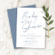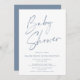 Convites Chá de fraldas de Script Manuscrito Dusty Blue Mod