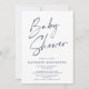 Convites Chá de fraldas de Script Simples Azul do Marinho M