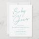 Convites Chá de fraldas de Script Simples Azul Teal Moderno