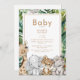 Convite para Chá de fraldas de Folhagem de Cores de Água da Girafa Bonita. De volta branca. Cores neutrais. Animais da Savana.
