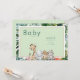 Bonita Girafa, chita, elefante e rinoceronte. Convite para Chá de fraldas de Folhagem de Watercolor. De volta branca. Cores neutrais. Animais da Savana.