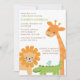 Esses convites adoráveis podem ser usados como convites para bebês, anúncios personalizados de nascimento ou adoção de bebês, festas de aniversários de criança, etc. e apresentam uma ilustração caprichosa de um leão, um elefante, uma girafa, uma zebra e um pássaro na selva. Perfeito para rapazes, raparigas ou chás de fraldas neutros. Estúdio de cacau