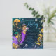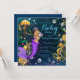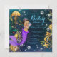 Chá de fraldas de Sereia com adorável sereia de bebês étnicos com diamante tiara e pérolas em um belo brilho azul e dourado submarino. Este belo convite para chá de fraldas de sereia é facilmente personalizado para o seu evento simplesmente adicionando os seus detalhes no estilo de letra, cor e texto da sua escolha. este é um design impresso sem joias, arcos, brilho, etc.