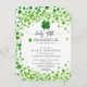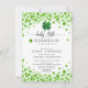 Irlandês moderno e divertido, quatro trevos folhetais, sortudo, pequeno convite para Chá de fraldas de shamrock. Belo convite para uma Rua. chá de fraldas do dia de Patrick, um chá de fraldas de março ou um chá do filme "Clover" irlandês. Sacudir que nosso chá de fraldas convide para encontrar um verde coordenador para um toque especial extra.