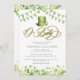 Este chá de fraldas festivo apresenta galerias verdes a aquarelas, chapéu de duende e borda de shamrock. Fácil de personalizar com o texto clicando em "Personalizar".