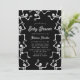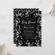 Celebre a mãe a ser com este convite de chá de fraldas de Halloween assustador, com esqueletos dançarinos num fundo negro e ousado. Uma reviravolta divertida sobre um tema clássico, este design branco e preto moderno traz a quantidade certa de espírito sazonal para a sua celebração de outubro. A parte traseira da placa apresenta um padrão de osso preto e branco para um toque extra divertido e festivo. Perfeito para chás de fraldas assustadores, temas de bebês góticos, ou futuros pais amantes do Halloween.