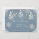 Este elegante convite para chás de fraldas apresenta um fundo azul-marinho claro com estrelas de folha de alumínio falsa, árvores cobertas de neve, falso falso floco de neve prateada e queda de neve. O verso apresenta um fundo de neve real. Personalize para suas necessidades. Você pode encontrar mais produtos correspondentes na minha loja.
