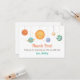 Um cartões de agradecimentos bonito com rabiscos do sol e planetas incluindo o planeta Terra com nuvens como sobrancelhas. Personalize com o seu obrigado a mensagem que aparece nas modelos de texto fornecidas.