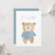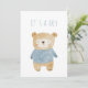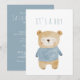 Celebre a chegada do seu bebê com este maravilhoso convite de chá de fraldas com um ursinho de pelúcia pintado manualmente em tons de azul macio e bege. A frente lê "É um menino" sobre o doce urso sonolento, oferecendo uma aparência suave e moderna para seu evento especial. Design minimalista e uma paleta pastel suave combinam-se para um toque na moda, animador, perfeito para comemorações de recém-nascidos e chás de fraldas encantadores.