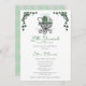 Este convite branco "Lucky Little Shamrock", cujo chá de fraldas é neutro em termos de gênero, apresenta uma carruagem vitoriana irlandesa desenhada à mão, enfeitiçada em tons verdes e cercada por shamrocks verdes e sortudos. A parte traseira apresenta um adorável padrão verde e de estilo de cinza. Ideal para chás de fraldas de março, acolhendo um bebê irlandês ou uma celebração em volta da Rua.