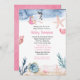 Gráficos de Chá de fraldas para uma Garota do Oceano para um chá de fraldas temático do oceano. O estrelo de fundo, conchas, e uma tartaruga-do-mar fofa, com um carregando de cegonha que uma menina voa por cima. Mamãe vai adorar essa garota. Use nossa modelo fácil para colocar os detalhes de sua festa neste cartão. Você pode ver como será antes de pedir. O pedido é fácil quando você terminar de adicionar suas informações.