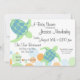 Pontos de confete verdes e amarelos e tartarugas marinhas divertidas, convite para chás de fraldas. Alterar e adicionar texto conforme preferido.