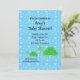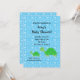 Chá de fraldas convite com tartaruga fofa mãe e tartaruga bebê em verde, padrão de corações azuis