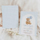 Prepare-se para chá dos pais com amor usando este adorável convite para chás de fraldas "Nós podemos esperar muito"! Com um doce ursinho pintado à mão segurando um balão azul, esta design é perfeita para celebrar a chegada de um pequeno pacote de alegria. O fundo de gingham azul suave e o layout de arco inspirado na vintage adicionam um eterno, encanto arecedor ao seu evento.