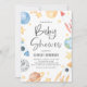 Convide familiares e amigos para o seu evento com este convite de chá de fraldas sobre tema espacial. Apresenta ilustrações de aquarela da lua, planetas, foguetes e estrelas. Este convite para o tema espacial é perfeito para chás de fraldas de menino. Personalize adicionando nomes, data, hora, local e outros detalhes.