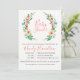 Flores botânicas de aquarela e coroa foliar, chá de fraldas convite com cor de coral correspondente no verso. Personalize o estilo, a cor e o tamanho da fonte do texto.
