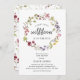 Uma flor doce está a caminho! Convite para chás de fraldas. Este adorável design apresenta um fundo branco clássico decorado com flores silvestres de cor d'água pintadas à mão, exibidas em uma coroa. Ao contrário, há um padrão de flor silvestre. O modelo elegante é fácil de personalizar com seus próprios detalhes de evento.