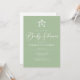 Este simples convite de chá de fraldas verde de sábio apresenta sua tipografia branca minimalista debaixo de um doce celular de brinquedo para um menino ou menina. Convites elegantes e neutros em termos de gênero.