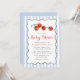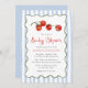 Celebre seu tomate no caminho com este charmoso convite para chás de fraldas! Apresentando tomate de cereja pintado manualmente pendurado na videira, esta design fresca e branca é perfeita para os chás de fraldas de jardim, de picnic ou de verão. O script elegante destaca o texto do "Chá de fraldas", enquanto um quadro verde redimensionado e faixas de aquarela azul-macia criam um cenário doce e convidativo. Uma escolha encantadora para pais que amam a natureza, a comida ou uma reviravolta divertida numa celebração clássica. Totalmente personalizável com os detalhes do seu chá.