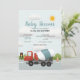 Este belo e moderno convite ao chá de fraldas apresenta um misturador de cimento vermelho e azul na estrada, com um padrão de transporte de construção correspondente no sentido inverso, e pode ser personalizado com os nomes dos pais e outros detalhes necessários para o seu partido. A perfeita adição com o tema da construção ao chá de fraldas dos casais.