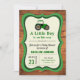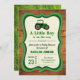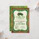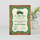 Incêndios para seus convidados com este legal chá de fraldas temático do trator convidam com um trator de fazenda verde giro com tipografia moderna sobre um fundo de madeira rústica. Basta adicionar os detalhes do seu evento neste modelo fácil de usar para torná-lo um convite de tipo único. Sacudir a carta para revelar uma bela textura de grama verde na parte de trás da carta.
