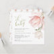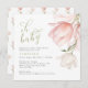 Um convite para chás de fraldas bonito apresenta uma mola de tulipas em tons de rosa e branco. Bebê no guião manuscrito. Personalize os principais detalhes, como a mãe, para que seja nome, data e hora do evento, local, RSVP e informações de registro. O reverso é coordenado num design de tulipa