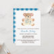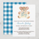 Chá de fraldas de ursinho azul com fundo xadrez azul