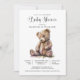 Charme sua família e amigos com este lindo ursinho simples e caprichoso inclinando sua cabeça, chá de fraldas convite em um estilo mínimo moderno de aquarela.