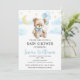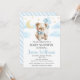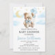 Mergulhe no charme celeste com nosso convite de chá de azul-aquarela e bebê-ouro apresentando um adorável ursinho voador segurando balões em meio à lua celestial e estrelas. Este convite encantador dá o tom perfeito para a sua celebração com tema celeste, misturando o branco com a elegância por um evento inesquecível.