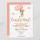 Convites Chá de fraldas de Urso de Teddy e Balões Rosa