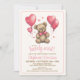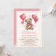 Uma brincadeira divertida com estes convites de "bearly wait!" para o chá ursinho de bebê. Apresentando um doce ursinho com um arco rosa, balões cor-de-rosa em forma de coração e corações cor-de-rosa.