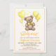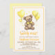 Uma brincadeira divertida com estas palavras podemos "esperar muito!" convites para o chá de bebê. Apresentando um doce ursinho com um arco amarelo macio, balões amarelos em forma de coração e corações amarelos.