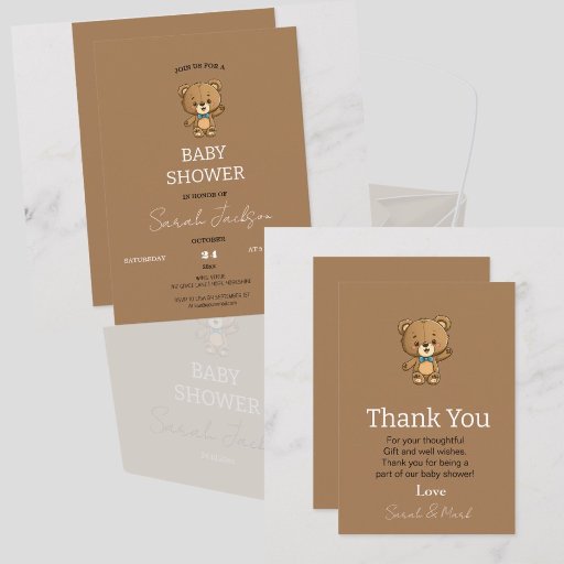 Convites Chá de fraldas de Urso Neutro Moderno em Cuta