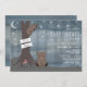 Um convite de chá de fraldas com ilustração de um urso-mãe e bebê descansando debaixo e numa árvore da floresta à noite sob as estrelas e a lua.