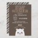 Um convite para chás de fraldas com tema "Polar Bonito" com texto personalizável. No verso, o urso polar está dizendo uma pequena mensagem que você pode mudar ou remover.