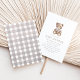Convide todos os seus amigos e familiares para o seu chá de fraldas com este simples convite para ursos de pelúcia de gingham!