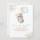 Ursinho de pelúcia e balões castanhos e azuis, bonitos, convites para o chá de bebê - Podemos Esperar que o bebê chegue!