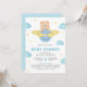 Convites Chá de fraldas de ursos de pelúcia azul-branca