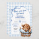 Convites Chá de fraldas de Vaca de Gingham Preppy Azul