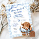 Preppy Blue Arco Highland Cow Invitation, Você Já Ouviu O Chá de fraldas Moos Boy, Fazenda Chá de fraldas De Vaca Sagrada, Tendo Vaca Bebê