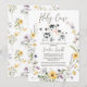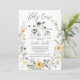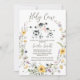 Amarelo Roxo selvagem Chá de fraldas Santa Vaca Convite à apresentação de chá de fraldas de raça neutra do gênero, convite temático por vaca neutra do gênero, com uma coroa de flor selvagem, vaca e vitelo e uma letra moderna de caligrafia. Este convite para o chá de fraldas de flores silvestres e vacas é ideal para um chá de fraldas neutro em termos de gênero.