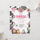 Junte-se para uma celebração memorável com este charmoso convite de chá de fraldas "Western Pink Wild West Country Watercolor Coquette Cowgirl Rodeo". Perfeito para acolher uma pequena vaquinha, este convite combina vibrações rústicas ocidentais com sotaques de aquarela cor rosa suave, definindo o tom para um chá de fraldas doce, na moda, com tema rodeado.
