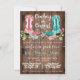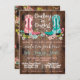 Super fofo cowboy ocidental ou chá de fraldas de cowgirl revela convites com botas cor-de-rosa e azul de cowboy, flores em um fundo de madeira rústica.