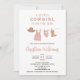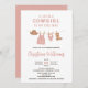 Celebrar a mãe a ser com este Convite de Chá de fraldas da Cowgirl. Apresentando uma design selvagem oeste cor-de-rosa com uma lindíssima linha de vaqueira de macacões, botas, chapéu e bandana, este convite é perfeito para uma vaquinha a caminho. O tema rústico ocidental combinado com detalhes de aquarela o torna adorável e na moda para um chá de fraldas feminino. Personalize facilmente texto, fontes e cores usando as ferramentas de design ou faça o download instantaneamente para um convite rápido e encantador.